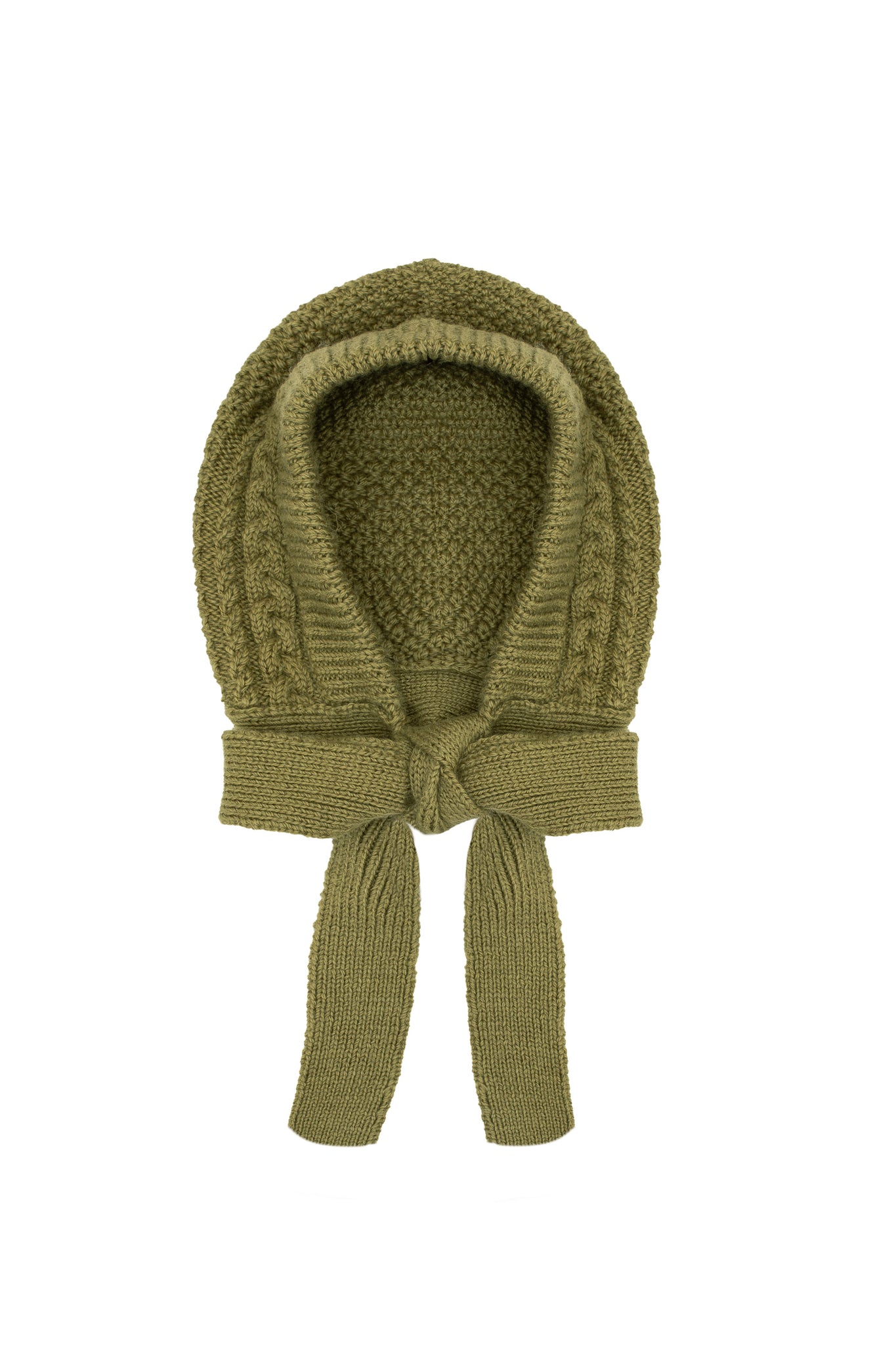 Detail - Bonnet with ties to be worn on the head and around the neck. One size.