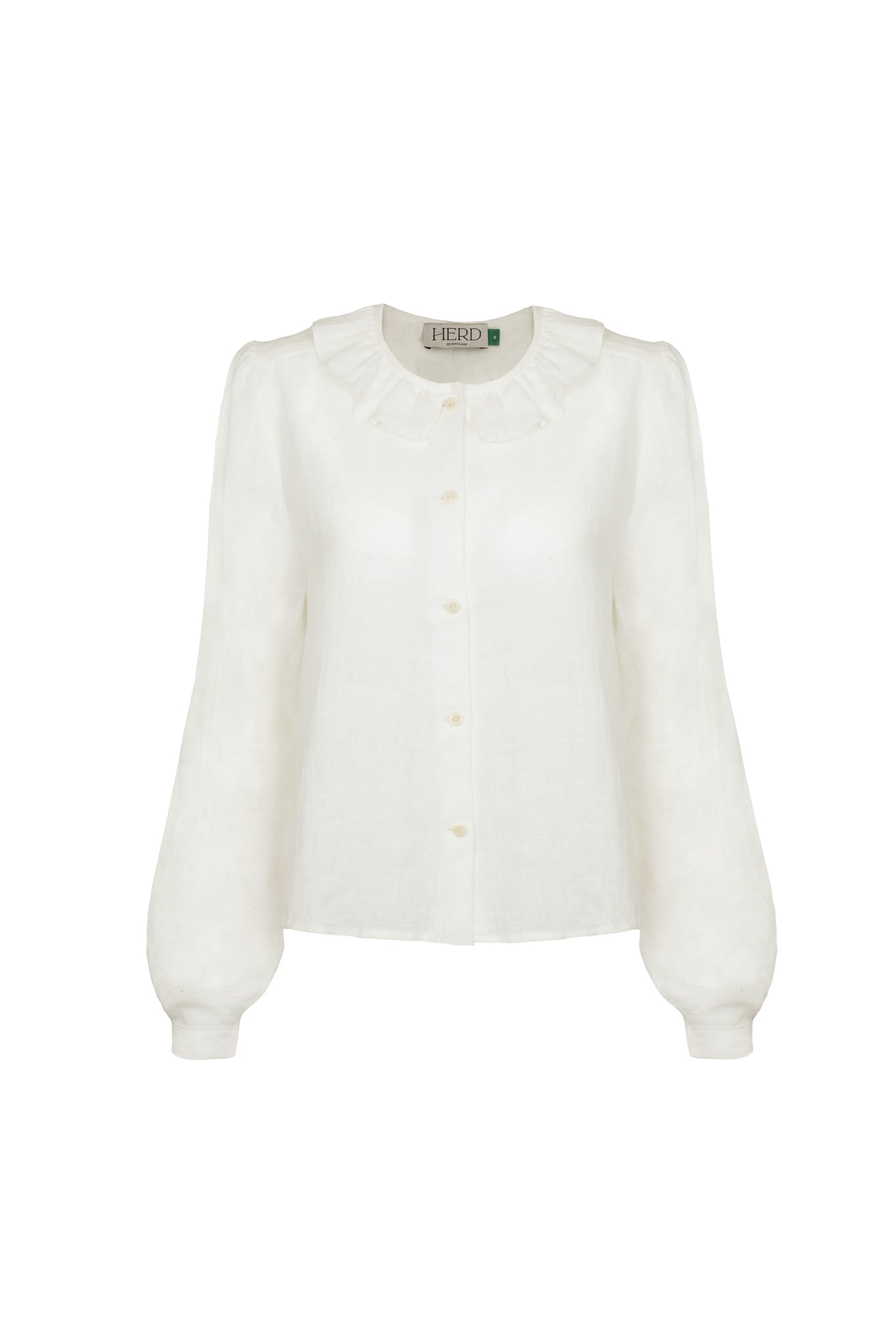 The Bess Blouse has a slightly boxy shape, wrist-length sleeves and a gentle ruffle which sits easy on the collarbone. Made in an elegant off-white pearly linen this Blouse is best worn under our Fleetwood or Brampton Jumpers or perfect with a Wyre Vest.